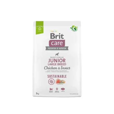 Η Brit Care Sustainable Junior Large Chicken & Insect 3kg είναι οικολογική super premium τροφή για νεαρούς σκύλους μεγαλόσωμων φυλών (3-24 μηνών). Με κοτόπουλο & έντομα, υποστηρίζει αρθρώσεις & οστά.