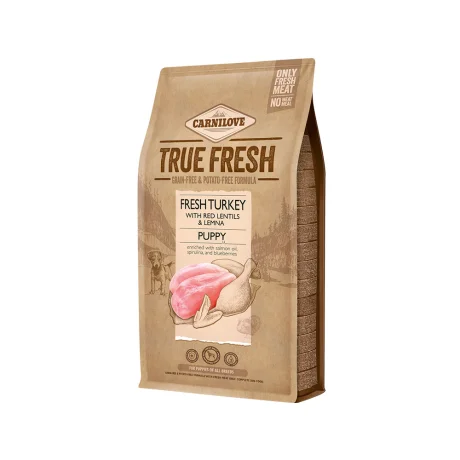 Carnilove True Fresh Puppy Turkey 1.4kg. Super premium, grain free ξηρά τροφή για κουτάβια. Με φρέσκια γαλοπούλα. Υποστηρίζει τη σωστή ανάπτυξη, υγιές δέρμα/τρίχωμα & δυνατό ανοσοποιητικό.