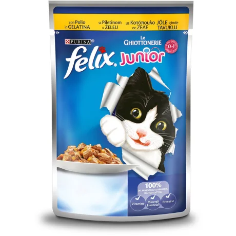 Γάτα / Τροφές / Υγρή τροφή (φακελάκι) / Felix Junior με Κοτόπουλο σε Ζελέ 85grFelix Junior με Κοτόπουλο σε Ζελέ 85gr