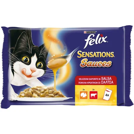 Γάτα / Τροφές / Υγρή τροφή (φακελάκι) / Felix Πολυσυσκευασία Sensations Sauces με Γαλοπούλα σε Σάλτσα,με Γεύση Μπέικον & Βοδινό σε Σάλτσα με Ντομάτα 4x85grFelix Πολυσυσκευασία Sensations Sauces με Γαλοπούλα σε Σάλτσα,με Γεύση Μπέικον & Βοδινό σε Σάλτσα με Ντομάτα 4x85gr