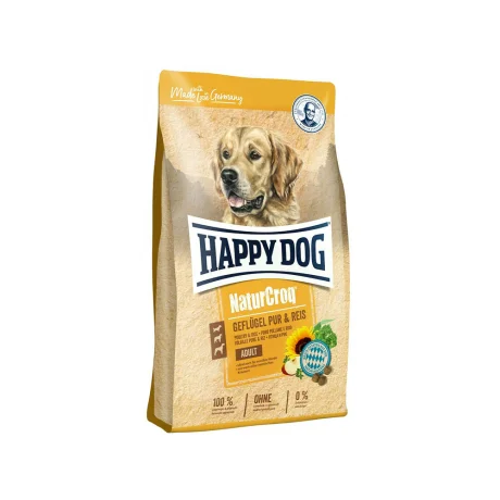 Πλήρης τροφή Happy Dog Naturcroq Adult Poultry & Rice 1kg για ενήλικους σκύλους. Με φυσικά συστατικά, πουλερικά και ρύζι, για ισορροπημένη διατροφή και ζωτικότητα.