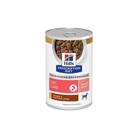 Η συνταγογραφούμενη δίαιτα Hill's ONC Care Chicken and Vegetable Stew Wet Dog Food έχει σχεδιαστεί προσεκτικά από διατροφολόγους και κτηνιάτρους για να υποστηρίξει σκύλους που υποφέρουν από σοβαρές ασθένειες, όπως ο καρκίνος.