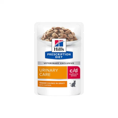 Hill’s PD Feline C/D Urinary Stress Φακελάκι με Κοτόπουλο 82gr, κλινική υγρή τροφή για γάτες με προβλήματα ουροποιητικού λόγω του στρες. Ελέγχει το στρες, μειώνει τον κίνδυνο λίθων, φροντίζει την υγεία της κύστης.