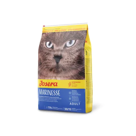 Πλήρης ξηρά τροφή Josera Marinesse Grain Free 10kg. Με υψηλή περιεκτικότητα σε σολομό (30%), ιδανική για γάτες με τροφικές δυσανεξίες ή ευαισθησίες, υποαλλεργική και εύπεπτη.