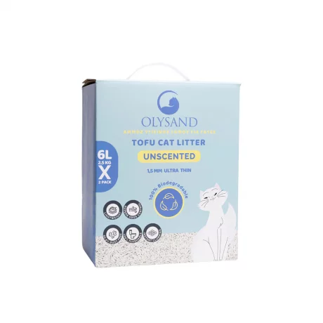 Η άμμος υγιεινής τόφου της Olysand με φυσικό άρωμα έχει πολύ ψιλό κόκκο (1,5 mm) από τόφου, ιδανική για οικολογικά ευαισθητοποιημένους ιδιοκτήτες γατών.