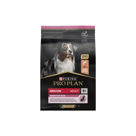 Purina Pro Plan Medium Adult Optiderma με Σολομό (3kg). Πλήρης ξηρά τροφή για ενήλικους σκύλους μεσαίων φυλών. Υποστηρίζει το ευαίσθητο δέρμα και προσφέρει υγιές, λαμπερό τρίχωμα.