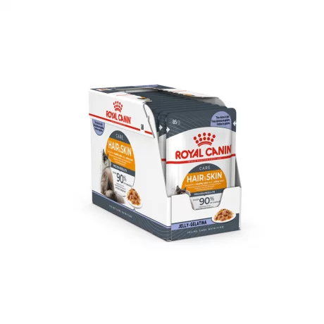 Royal Canin Wet Hair & Skin Jelly 12x85gr. Πλήρης υγρή τροφή σε ζελέ για ενήλικες γάτες με ευαίσθητο δέρμα & θαμπό τρίχωμα. Βελτιώνει το δέρμα και χαρίζει λάμψη.