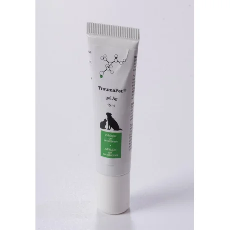 TraumaPet Gel Ag 15ml, κτηνιατρικό τζελ επούλωσης τραυμάτων για σκύλους, γάτες και άλλα ζώα. Με ισχυρή αντιμικροβιακή δράση, προωθεί την επούλωση πληγών, κοψιμάτων, εγκαυμάτων & τσιμπημάτων εντόμων.