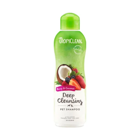 Tropiclean Berry & Coconut Deep Clean Shampoo 592ml. Σαμπουάν σκύλου & γάτας που καθαρίζει βαθιά χωρίς να ξηραίνει. Με μούρα & καρύδα, απομακρύνει αποτελεσματικά βρωμιά & οσμές.