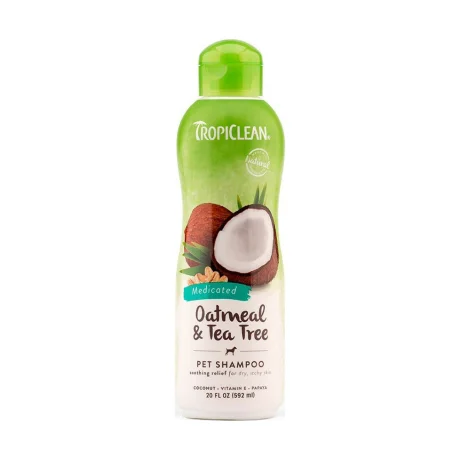 Το Tropiclean Medicated είναι σαμπουάν που περιέχει βιολογικά συστατικά όπως έλαια βρώμης και τσάι δέντρου που καταπραΰνει το ξηρό ή με φαγούρα δέρμα.