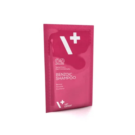 Θεραπευτικό σαμπουάν Vet Expert Benzoic (20x15ml). Ειδική φόρμουλα για σκύλους & γάτες με δερματικά προβλήματα. Καθαρίζει βαθιά, έχει αντιβακτηριδιακή δράση και βοηθά στη ρύθμιση της λιπαρότητας.